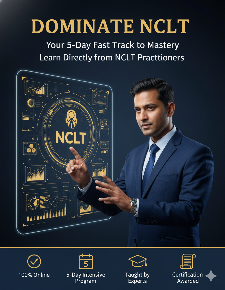 5‑Day Live Online Certificate Course on NCLT Litigation (with recordings)Attend live 7:00–8:30 PM IST for 5 days (recordings provided if you miss a class).