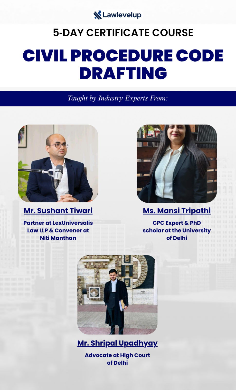 7‑Hour Certificate Course on CPC Drafting (Recorded)Learn court‑ready drafting for real civil cases - pleadings, plaints, written statements, replications, amendments & framing of issues - guided by mentors who draft for a living.