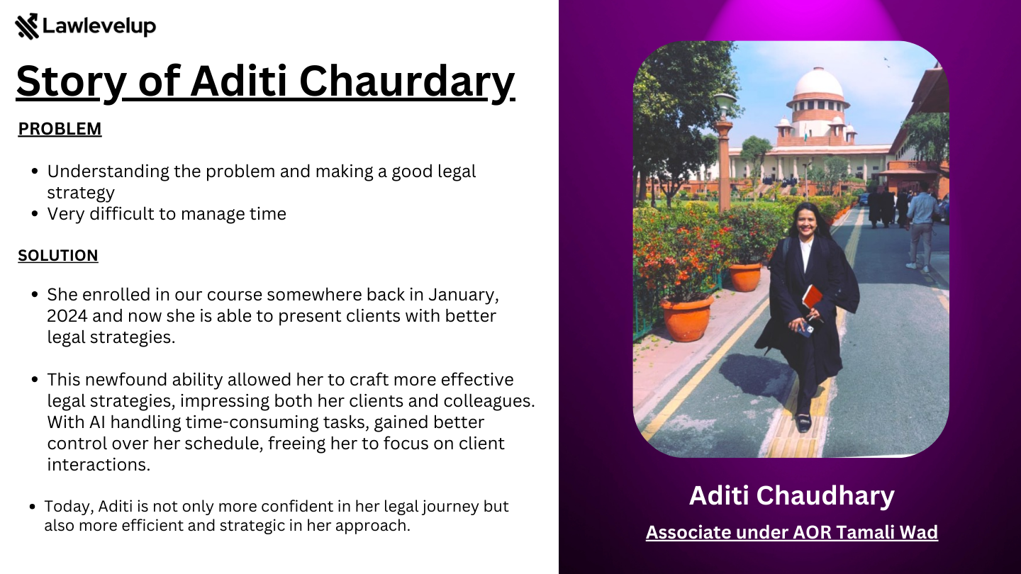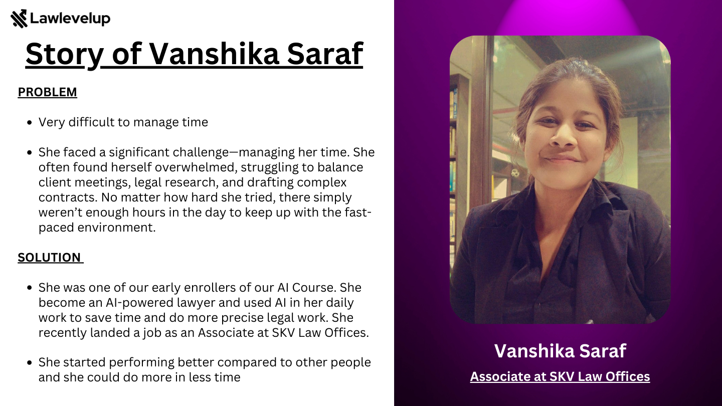 Arush Agarwal is the founder of Lawlevelup and an AI expert. With a deep passion for the intersection of law and technology, Arush has spearheaded AI workshops attended by over 2,800 participants. His extensive research spans over 130 AI tools, and he has provided personalized coaching to lawyers, helping them leverage AI to enhance their results and save valuable time.